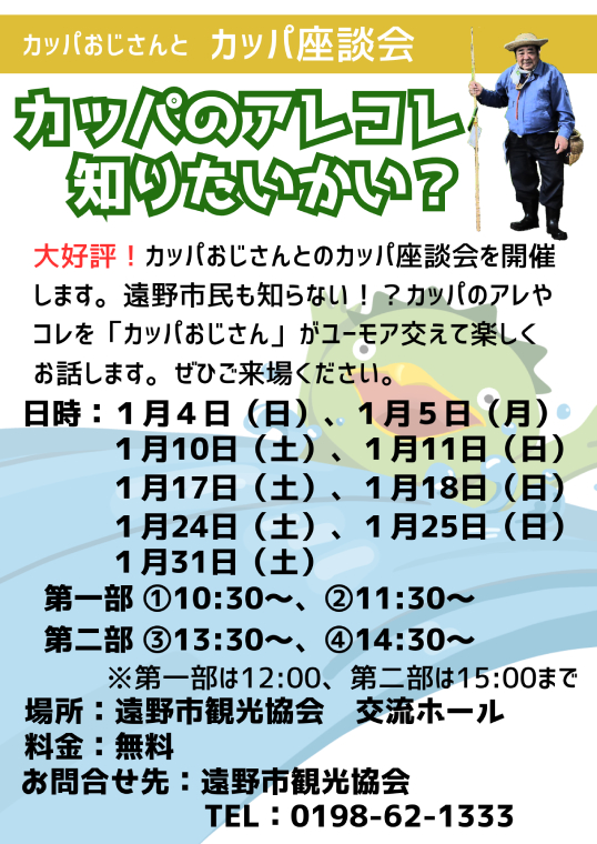 普段はカッパ淵にいる通称「カッパおじさん」が、冬期間、遠野市観光協会内でカッパの座談会を開きます。